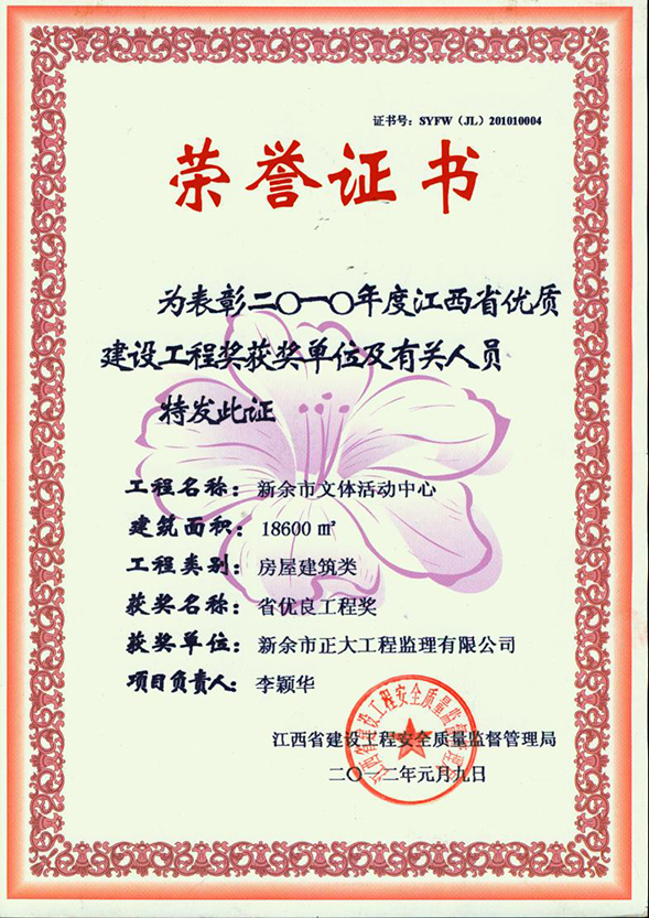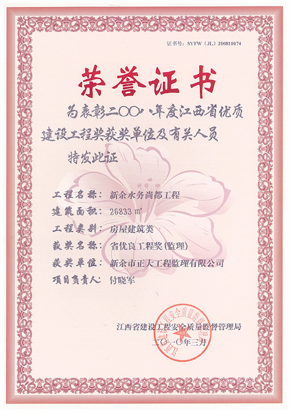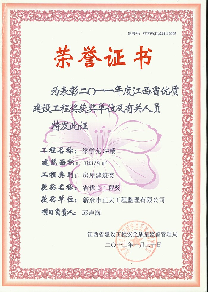 新余市正大工程監(jiān)理有限公司依托新余市建筑設(shè)計(jì)院,于1995年11月成立,是新余市開展監(jiān)理工作最早的監(jiān)理單位,本公司具有建設(shè)部核發(fā)的房屋建筑工程甲級(jí)監(jiān)理資質(zhì)、市政公用工程乙級(jí)監(jiān)理資質(zhì)、國(guó)家人防辦核發(fā)的人防工程監(jiān)理乙級(jí)資質(zhì)。我公司始終堅(jiān)持“客戶至上、質(zhì)量第一、信守合同”的經(jīng)營(yíng)理念;追求“為社會(huì)創(chuàng)造價(jià)值、為業(yè)主創(chuàng)造效益、為自身謀求發(fā)展”的經(jīng)營(yíng)宗旨;遵循“守法、誠(chéng)信、公正、科學(xué)、優(yōu)質(zhì)、高效”的工作原則,以雄厚的技術(shù)力量、完善的管理制度、豐富的監(jiān)理經(jīng)驗(yàn)、良好的企業(yè)信譽(yù)迅速成為我市監(jiān)理行業(yè)的一支新銳力量! 查看更多>>